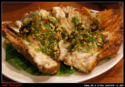 鱸魚肉質尚可(有魚刺要小心), 但特殊的炒料才是這道菜的精華.