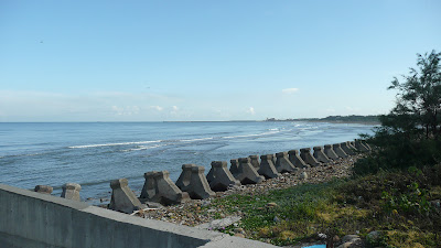 過池和橋後, 西濱道路上兩邊都有小路, 右轉下去, 才可以接到新豐紅毛港自行車道/新屋綠色隧道/濱海林蔭大道, 否則就會直接殺到永安漁港了.
