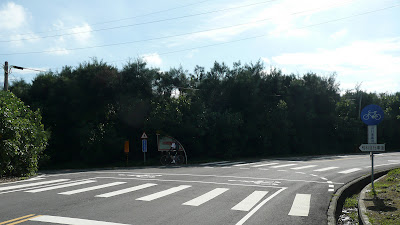 其實我的直覺跟你差不多, 但是那莫名其妙的路標跟繞來繞去的自行車道, 讓人錯亂, 無法相信自己的直覺.