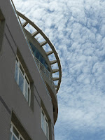 漁會大樓的有幾個50幾歲車友, 跟我們說這邊吹海風很舒服, 於是就把單車靠牆, 躺在漁會大樓的走廊吹風看天空.
